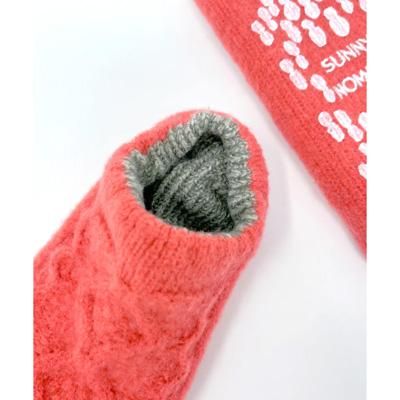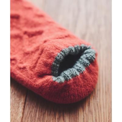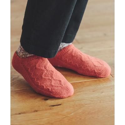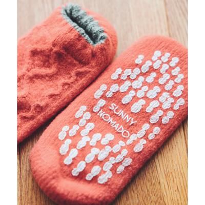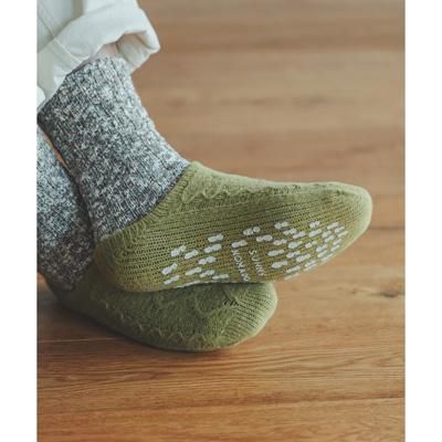 足にしっかりフィットする二重編みの立体構造を採用。足裏には滑り止め加工が施されており、フローリングなど滑りやすい床でも安心です。