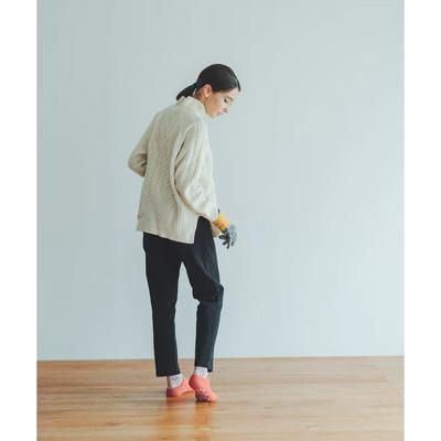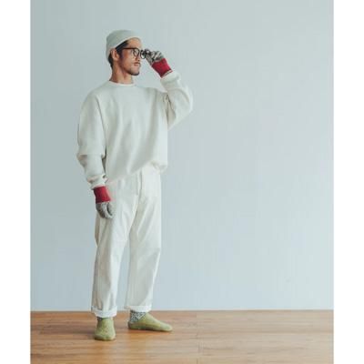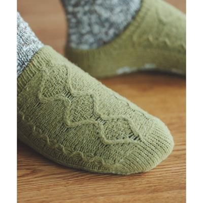 染色段階で自然素材である、カモミール成分とカプサイシン(唐辛子)成分を糸に練り込んだ仕様糸で素材から足元を温めてくれます。