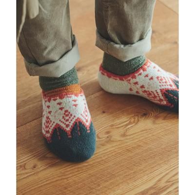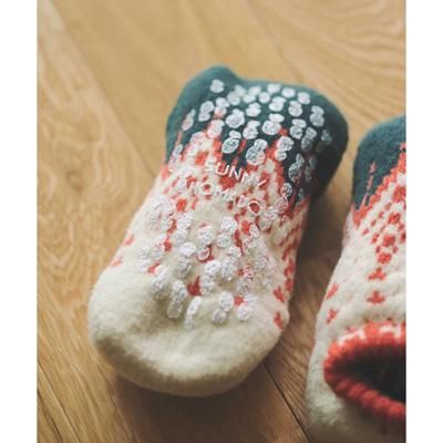 ルームシューズは足にぴったりフィットする二重編みの立体構造。色とりどりの糸を使って作られた「引き揃え糸」は綿麻のオリジナル糸です。その風合いは落ち着いた雰囲気の中に、様々な表情を魅せてくれます。足裏には滑り止め加工が施されておりフローリングなど滑りやすい床でも安心です。19cm〜28cmまでの男女兼用フリーサイズのためお子様から大人の方までお揃いでお使いいただけます!