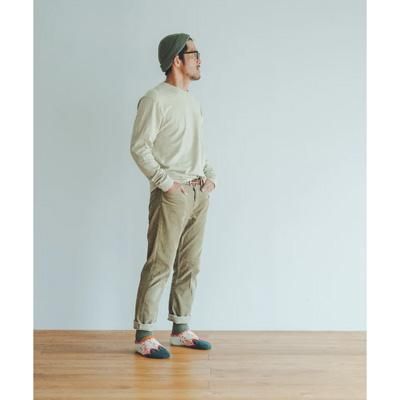 染色段階で自然素材である、カモミール成分とカプサイシン(唐辛子)成分を糸に練り込んだ仕様糸で素材から足元を温めてくれます。