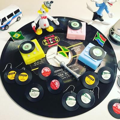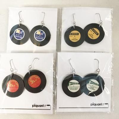 ヴィンテージレコード盤のミニチュアピアスです。パーツは1970年代頃のデッドストックになります。
