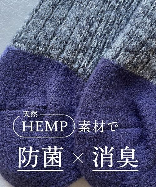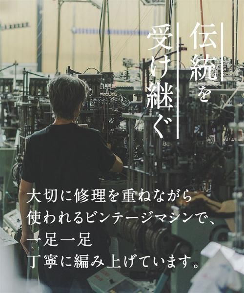 昔のビンテージ編み機を使い、1日生産が1台の機械で40枚という非効率的な作り方によって実現された、日本一の履き心地の靴下。天然素材の中でも1番丈夫で機能的と呼ばれる大麻(ヘンプ)とウールや綿などの高機能素材を絶妙なバランスで掛け合わせて編み込むことにより、それぞれの素材の良さを引き出す奇跡のジャパンメイド・ソックス!
